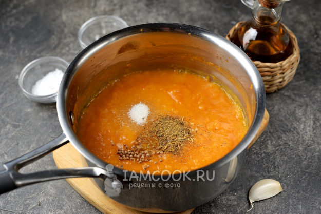 Добавьте хмели-сунели и кориандр молотый или горошком, варите минут 10 на тихом огне.