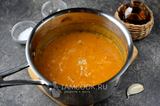 Спустя время добавьте измельченный чеснок и уксус, варите еще 10 минут.
