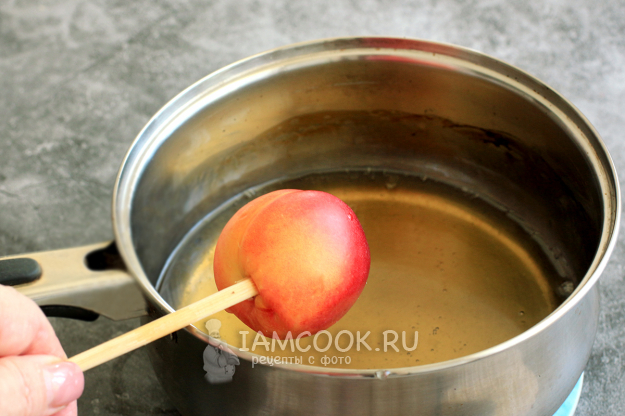 Лучше всего иметь помощника в этом деле, чтобы один человек окунал в сироп, а второй "купал" фрукт в ледяной воде. Все нужно делать быстро и снимать весь процесс довольно сложно.