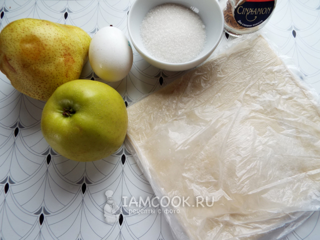 Штрудель с яблоками и грушей готовим из таких продуктов.