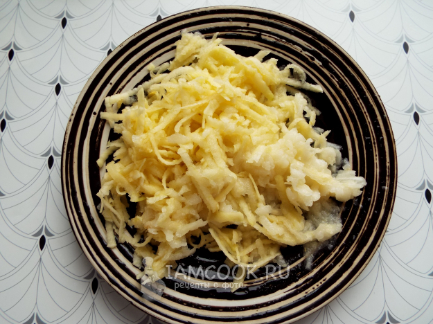 Яблоки и грушу почистить, натереть на крупной тёрке, если много сока - немного отжать.