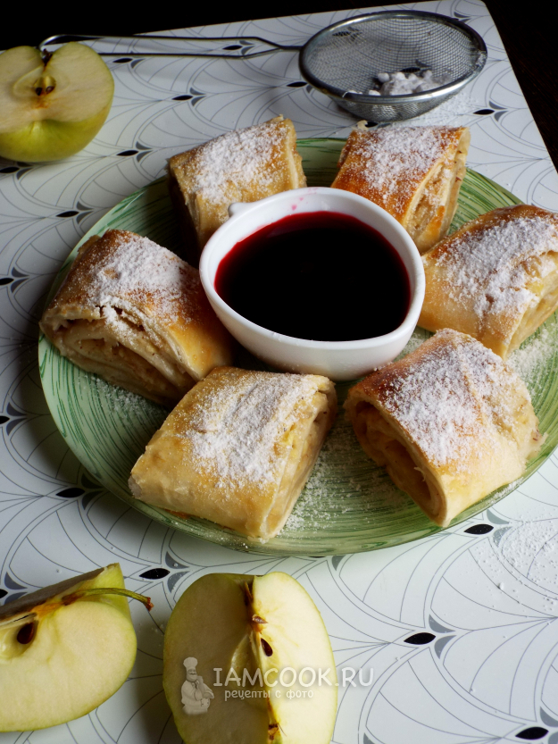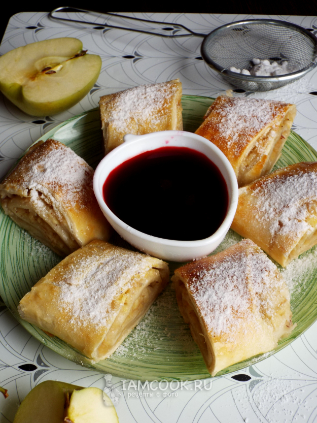 Ароматный сладкий штрудель с яблоками и грушей готов.