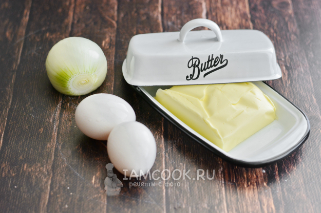 А я же хочу показать вам вариант быстрой яичной помакуши. Такую помакушу бабушка готовила нам к завтраку, когда было у нее время. Для яичной помакуши потребуются сливочное масло, небольшая луковица и пара яиц.
