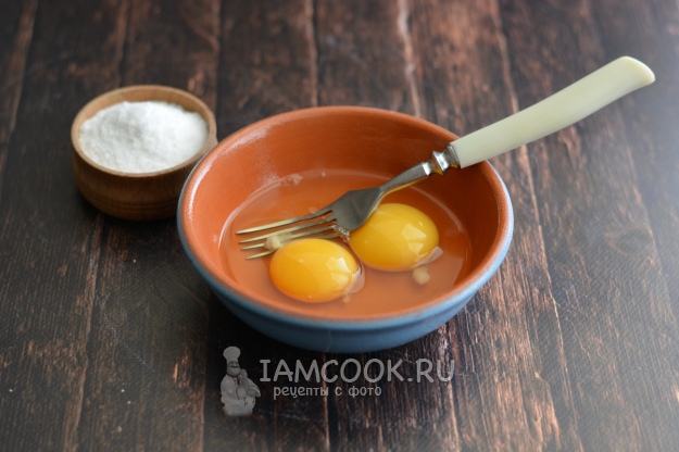 Тем временем взбейте вилкой яйца со щепоткой соли.
