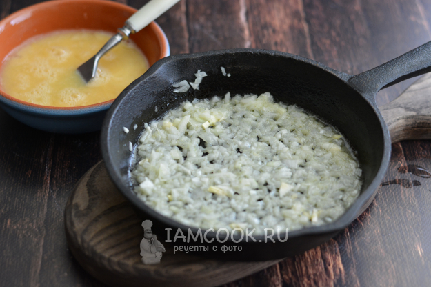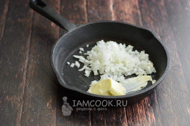 Как можно мельче нарубите лук. В сливочном масле потушите его на среднем огне до прозрачности. Лук не должен начать поджариваться, он должен именно потомиться.