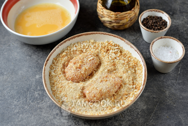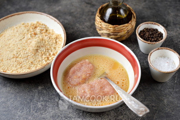 А пока взбейте оставшееся яйцо до легкой пены. Обмакните в него наггетсы.