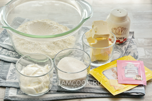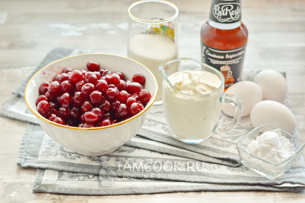 Подготовьте ингредиенты для Цветаевского пирога с вишней в сметанной заливке.