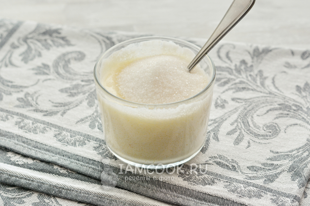 Сметану смешайте с сахаром, солью и ванилином, чтобы сахар полностью растворился.