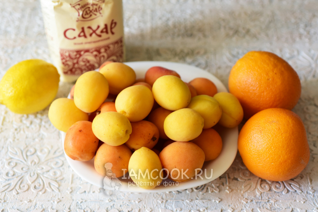 Ингредиенты для заготовки джема из абрикосов с апельсином и лимоном на зиму - перед вами.