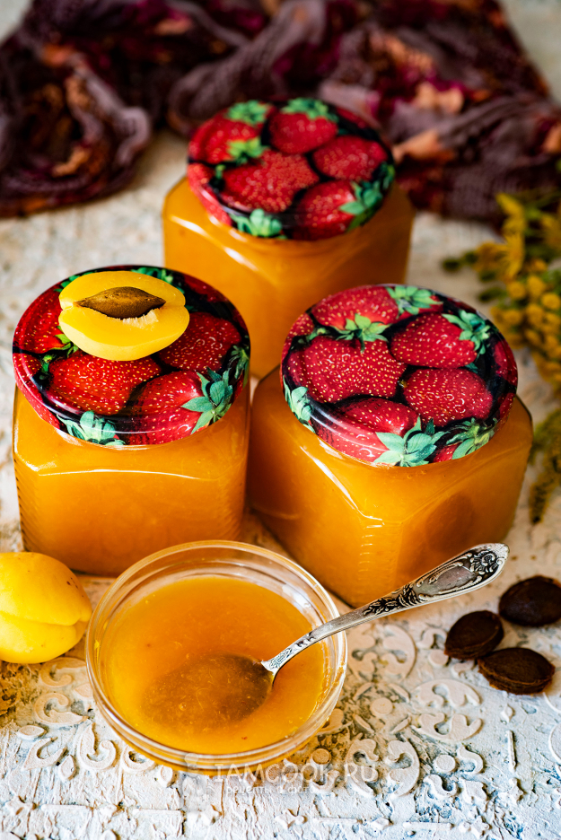 Заготовка джема из абрикосов с апельсином и лимоном на зиму завершена.