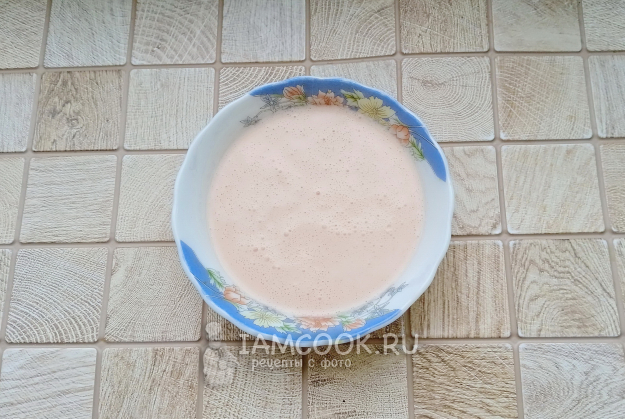 Сливки взбейте с томатной пастой с помощью блендера или венчика, немного посолите по вкусу. Если томатная паста кислая, то добавьте сахар.