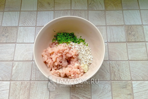 Добавьте овсяные хлопья быстрого приготовления и нарезанную петрушку или укроп.