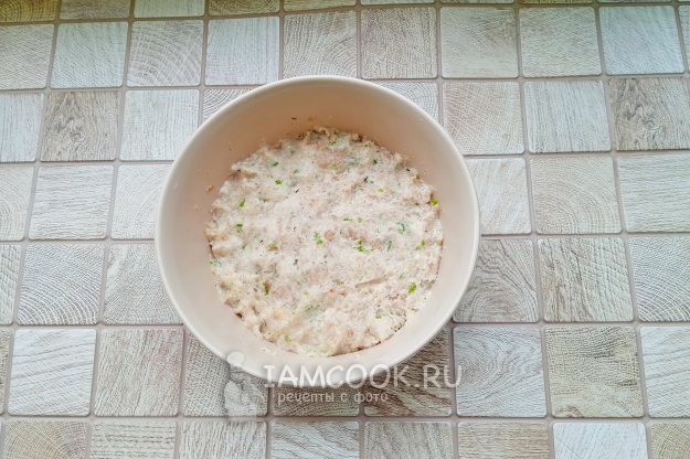 Посолите и поперчите по вкусу. Тщательно перемешайте фарш, а еще лучше, если немного взобьете его блендером. Фарш станет более однородным, немного вязким, что позволит ему хорошо держать форму.