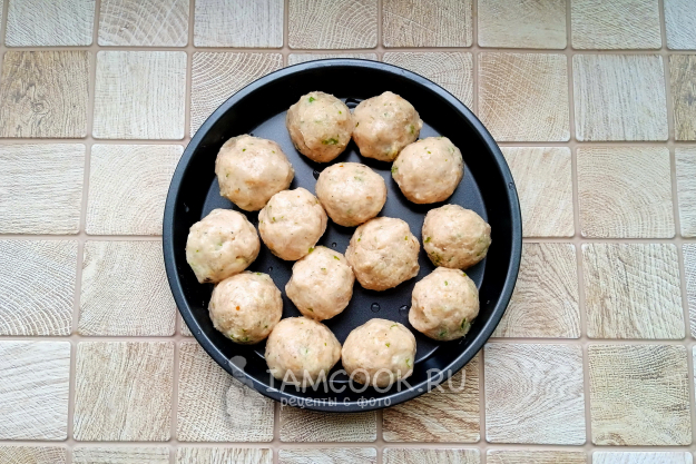 Сформируйте из фарша тефтели и выложите в форму для запекания.