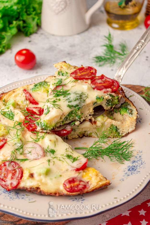 Готовый омлет с брокколи и помидорами снимайте со сковороды, нарезайте на кусочки и подавайте к столу горячим. Приятного аппетита!!!