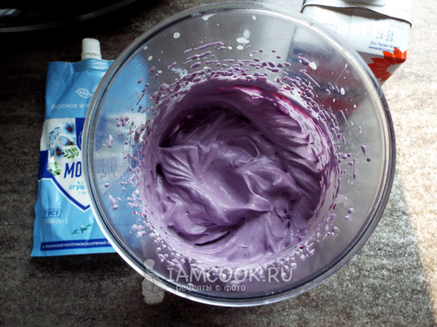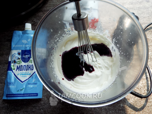 Быстро взбить. Не обязательно стараться и делать массу однородной по цвету.