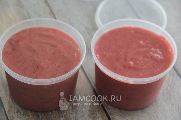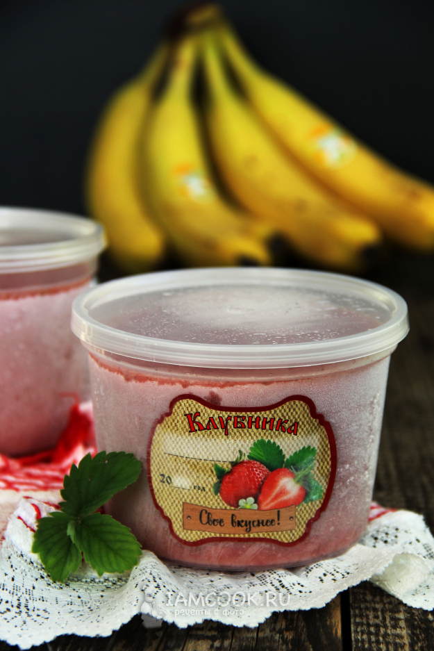 Поставить лоточки в морозильную камеру и полностью заморозить. В таком виде замороженная клубника с бананом долго сохраняет свою свежесть и аромат (до зимы точно). Очень вкусно!