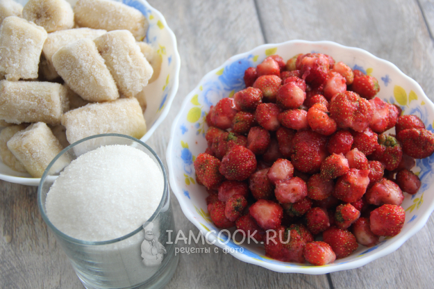 Продукты для заготовки замороженной клубники с бананом на зиму (измельчённых в блендере) - перед вами.