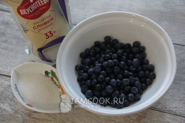 Подготовить продукты черничного мороженого. Ягоды перебрать от листиков.