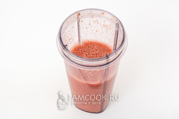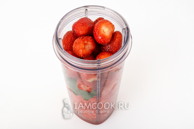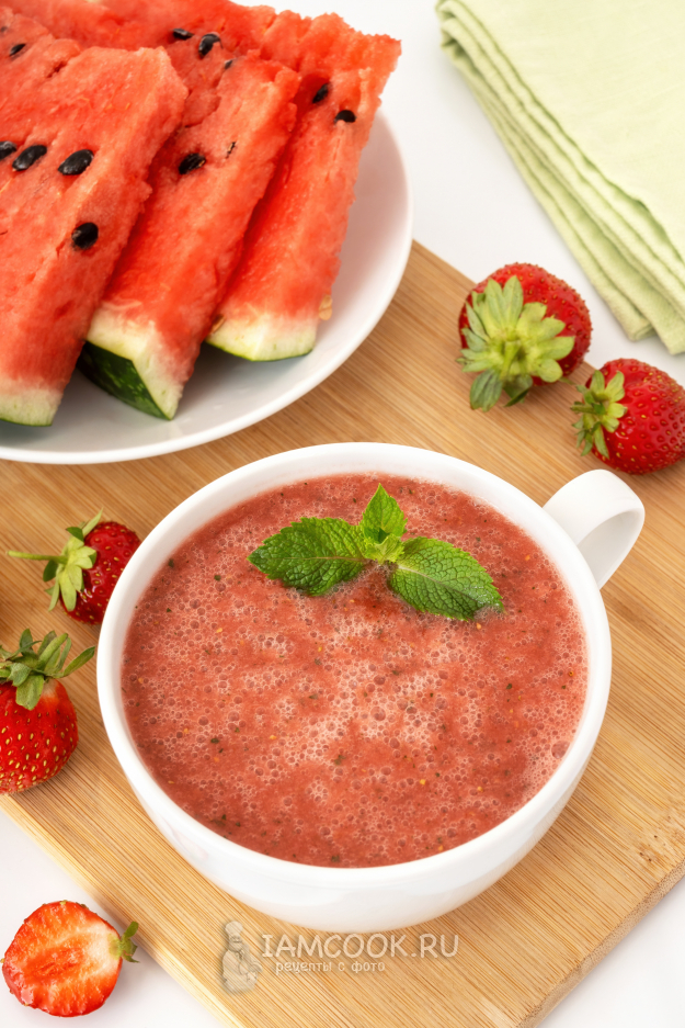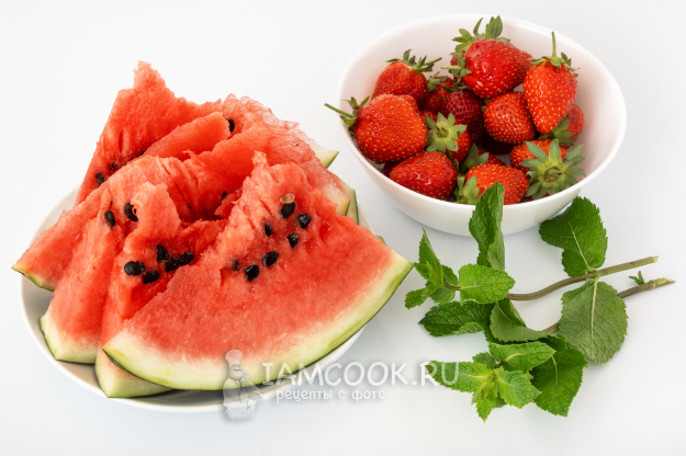 Для смузи из клубники и арбуза подготовьте необходимые компоненты по списку. Вес арбуза указан уже без кожуры.