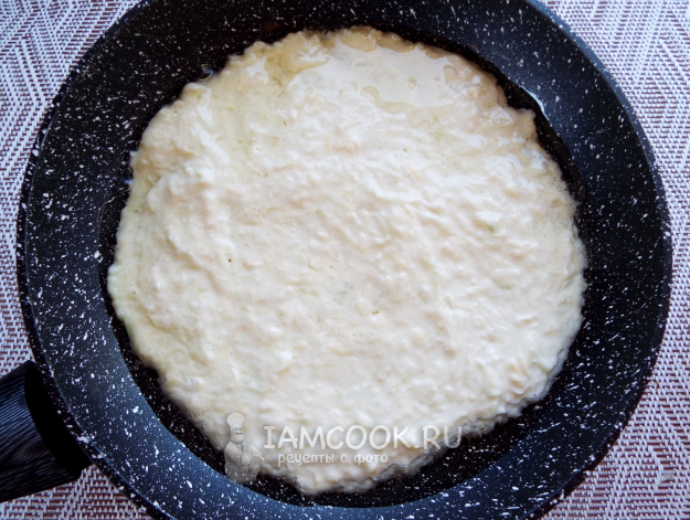 Масло накалить в сковороде. Распределить равномерно кабачковую массу.