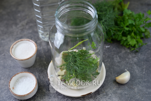 Прикройте специи веточками петрушки и укропа.