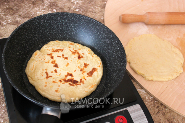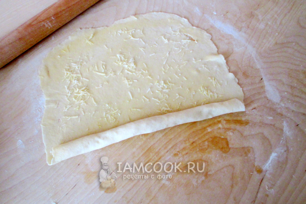 Сплющите его руками как бы в «гармошку», это делается, чтобы придать лепешке слоистость.
