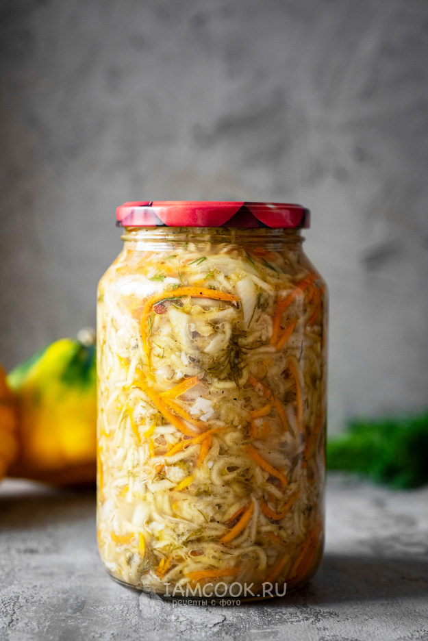 Утром банку с патиссонами отправим на хранение в темную и прохладную кладовую. Приятных консерваций!
