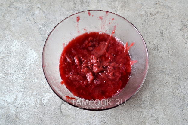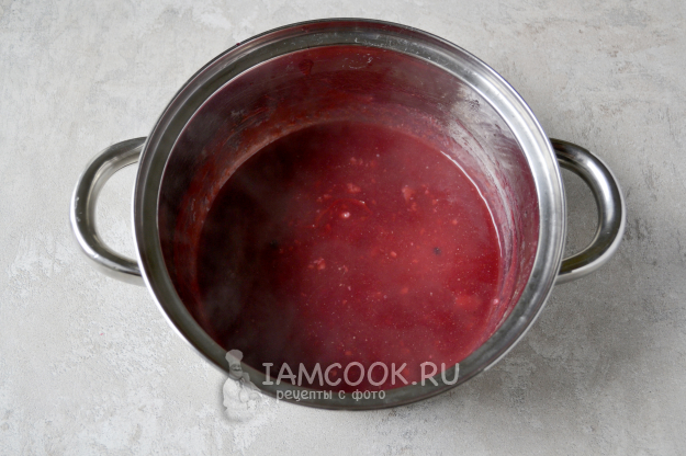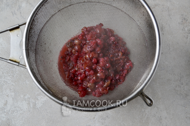 Горячие ягоды протрите через металлическое сито. Жмых выбросьте.