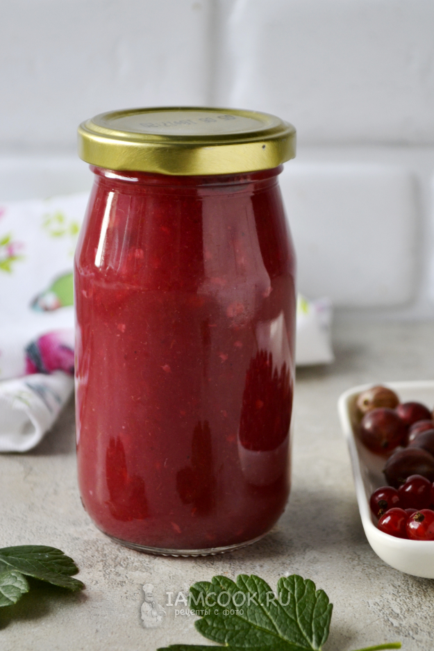 Соус из красной смородины и крыжовника на зиму готов. Баночку храните в прохладном помещении без попадания солнечных лучей: в подвале, подполье, гараже.