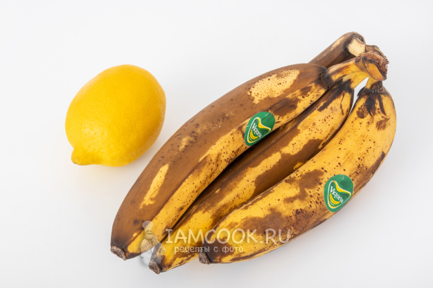 Для приготовления банановых чипсов в сушилке для фруктов возьмите бананы и лимон. Лучше всего использовать спелые бананы. Я использовала 4 банана весом 485 г (с кожурой). Вес бананов без кожуры - 335 г.