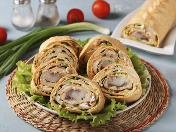 Рулетики из огурцов с начинкой готовы! Их можно подавать на одной большой тарелке вперемешку или разложить по видам на отдельные тарелки.