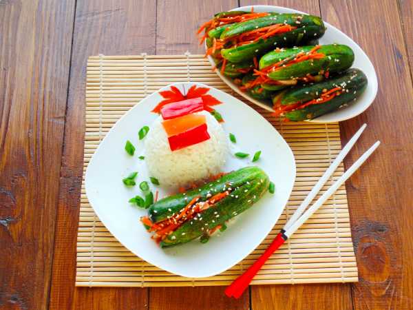 Также огуречные рулетики с начинкой можно поставить на блюдо торцом вверх и присыпать слегка обжаренным кунжутом.