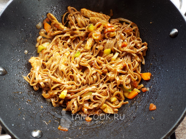 Сытная и питательная гречневая лапша со свининой и овощами готова.