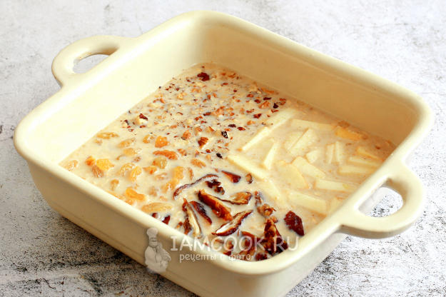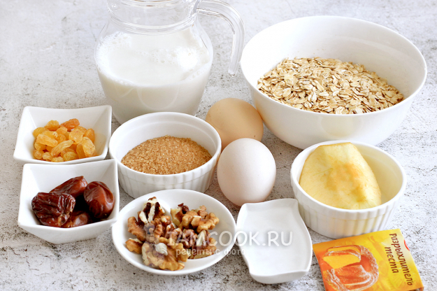 Для запеканки из овсянки (овсяных хлопьев) с различными наполнителями нам потребуются следующие продукты.