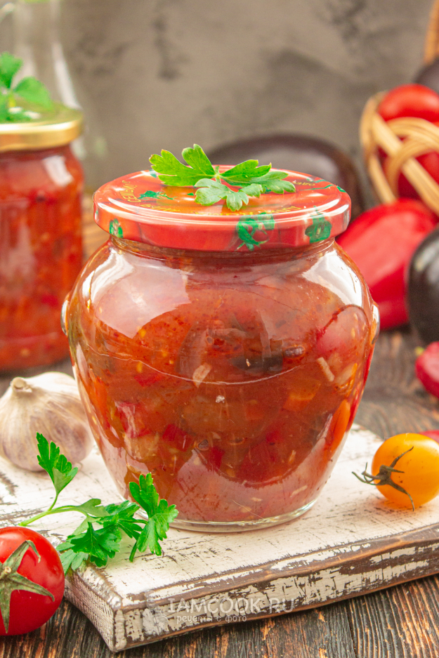 Салат «Анкл Бенс» из баклажанов и помидоров на зиму готов.