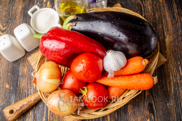 Ингредиенты для заготовки салата «Анкл Бенс» из баклажанов и помидоров на зиму подготовьте по списку. Овощи помойте, обсушите.