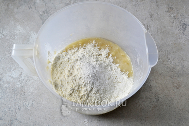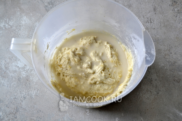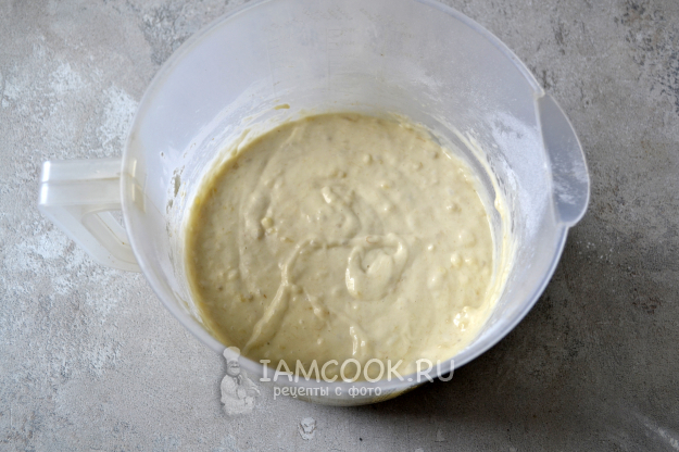 Перемешайте массу. У вас должно получиться в меру густое тесто.