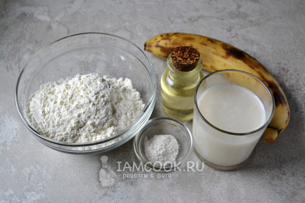 Продукты для приготовления банановых панкейков без молока, яиц и кефира - перед вами.