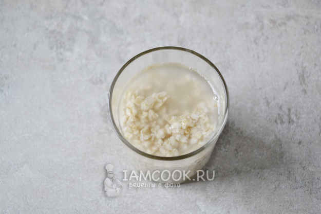Овсяные хлопья залейте холодной водой и оставьте на 1-2 часа.