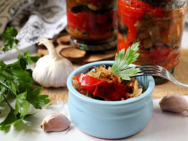 Ошпарьте банку и крышку кипятком. Выложите в нее приготовленную овощную закуску до верха. Если переживаете за сохранность заготовки в домашних условиях, то можете добавить 1 таблетку аспирина - он препятствует брожению.