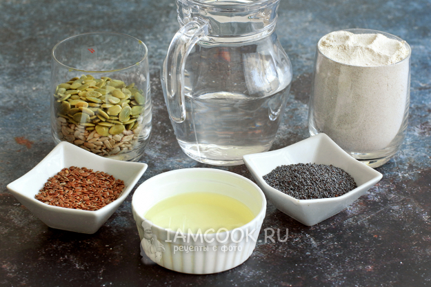 Для выпечки хрустящих ржаных хлебцев без дрожжей и солода возьмите все необходимое по списку ингредиентов.