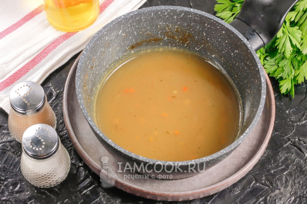 Перелейте обратно все в ковш или казан и всыпьте все заявленные специи и пряности. Вы можете их заменять или дополнять по своему вкусу. Нарежьте слайсами очищенный и промытый зубчик чеснока и добавьте его в емкость.