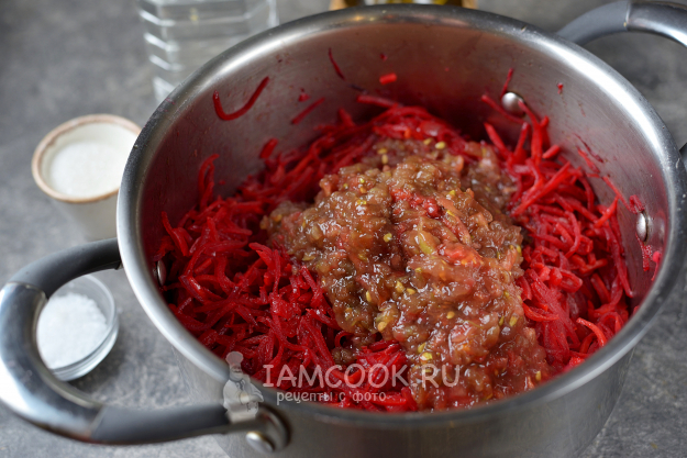 Перенесите свекольную икру в кладовку и храните до зимы.
