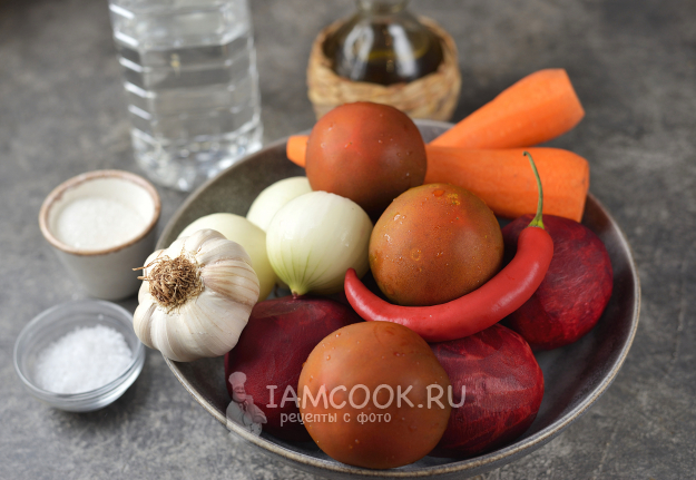 Ингредиенты для заготовки острой икры из свеклы на зиму - перед вами. Свекла должна быть сладкого сорта, красивого бордового цвета, тогда и готовая икра будет такой же.