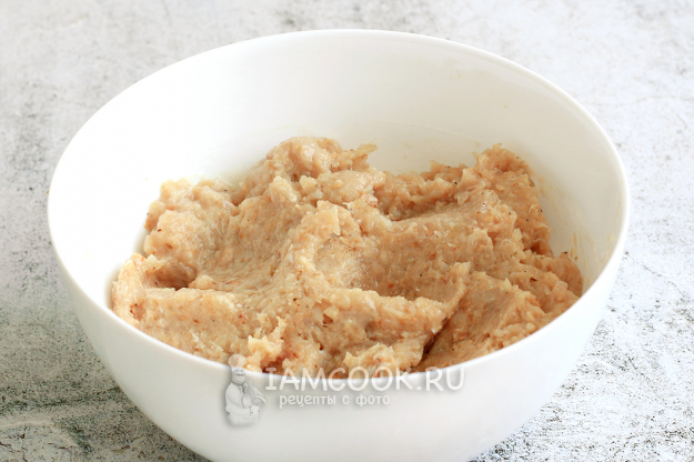 Нам понадобится куриный фарш, у меня он домашний, из куриной грудки. Вы можете сделать его наполовину из бедер без кожи и грудки.