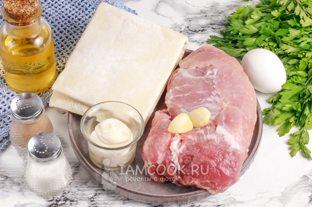 Продукты для запекания буженины в тесте в духовке - перед вами.