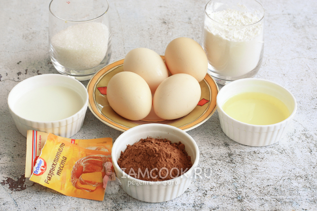 Если вы решите приготовить торт "Шифоновая Прага", то подготовьте необходимые продукты по списку. Количество ингредиентов увеличивайте в зависимости от величины вашей формы.