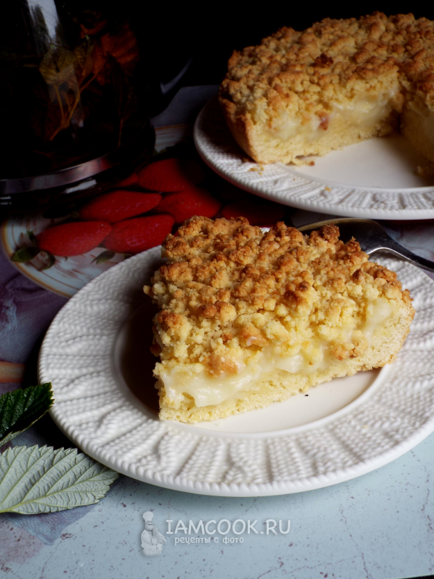Насыпной пирог с заварным кремом готовим из такого набора продуктов.