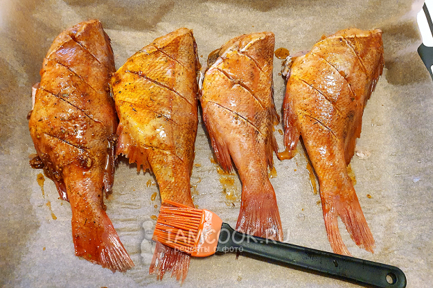 Смажьте рыбу подготовленным маринадом со всех сторон, промазывая и внутри тоже.